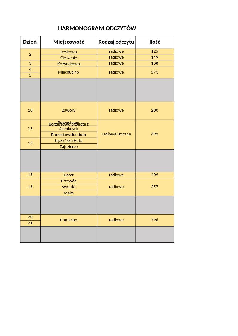 Aktualizacja harmonogramu odczytów wodomierzy