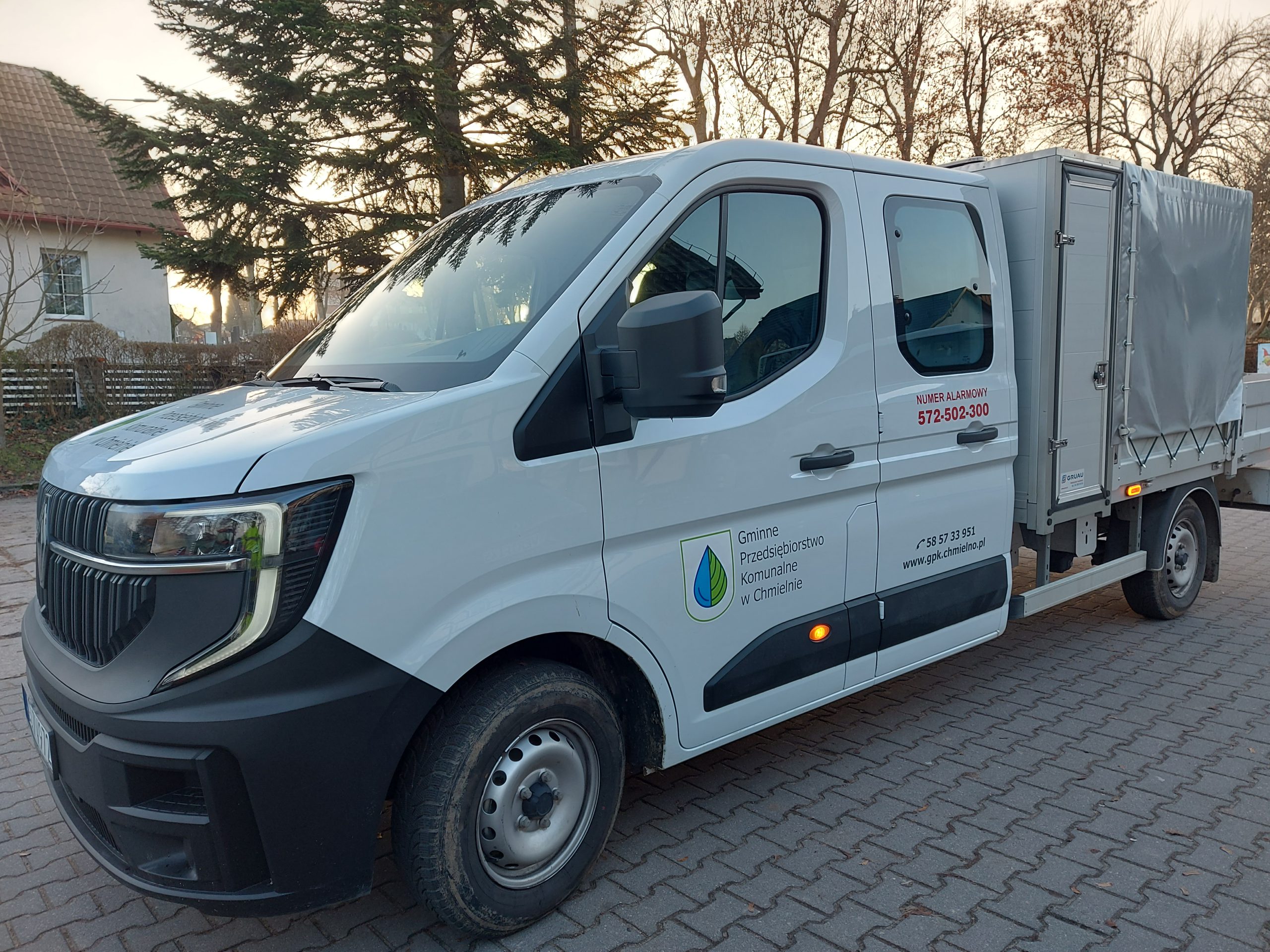 Mamy przyjemność poinformować Państwa, że pod koniec 2025 roku udało nam się zakupić nowy samochód Renault Master. Pojazd ten będzie służył do świadczenia usług w zakresie prac wodociągowo-kanalizacyjnych na terenie gminy Chmielno.
